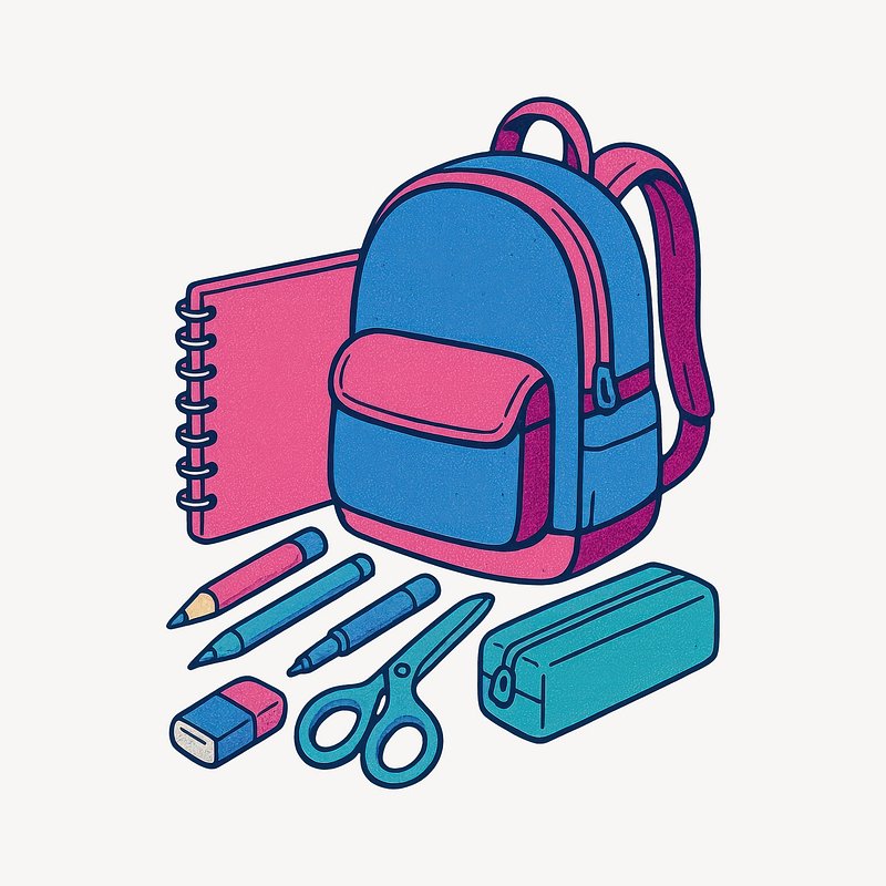 Backpack stationery pencil eraser illustration https://www.rawpixel.com/image/24768013/backpack-stationery-pencil-eraser-illustrationView license