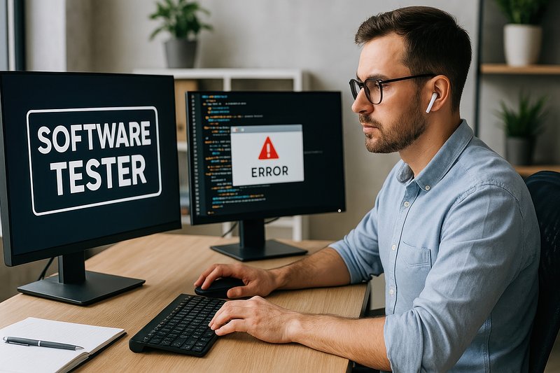Focused software tester analyzing errors. https://www.rawpixel.com/image/17294723/focused-software-tester-analyzing-errorsView license