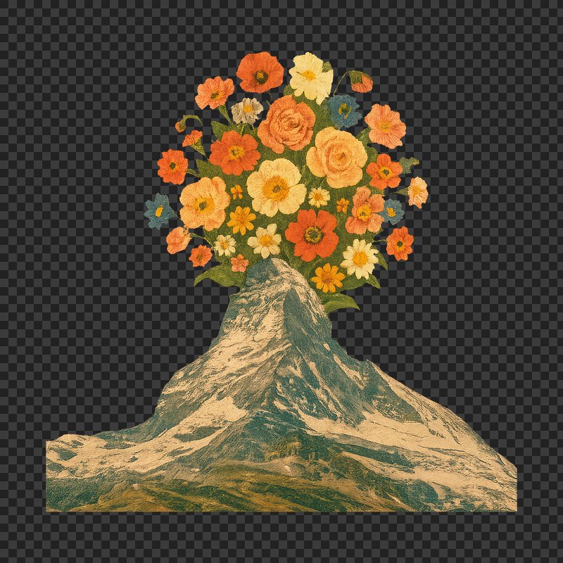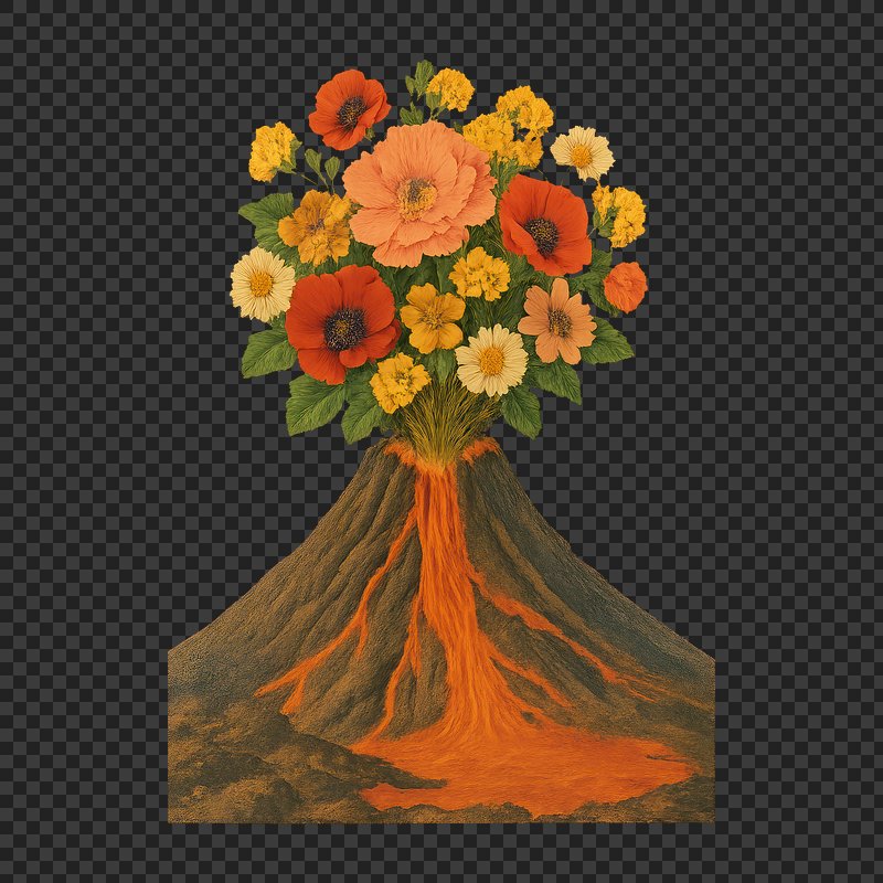PNG Volcano blooms with vibrant flowers. https://www.rawpixel.com/image/22630720/png-volcano-blooms-with-vibrant-flowersView license