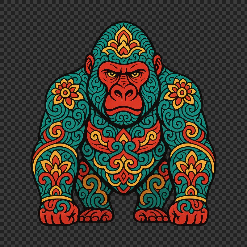 PNG Colorful ornate gorilla illustration https://www.rawpixel.com/image/23939249/png-colorful-ornate-gorilla-illustrationView license