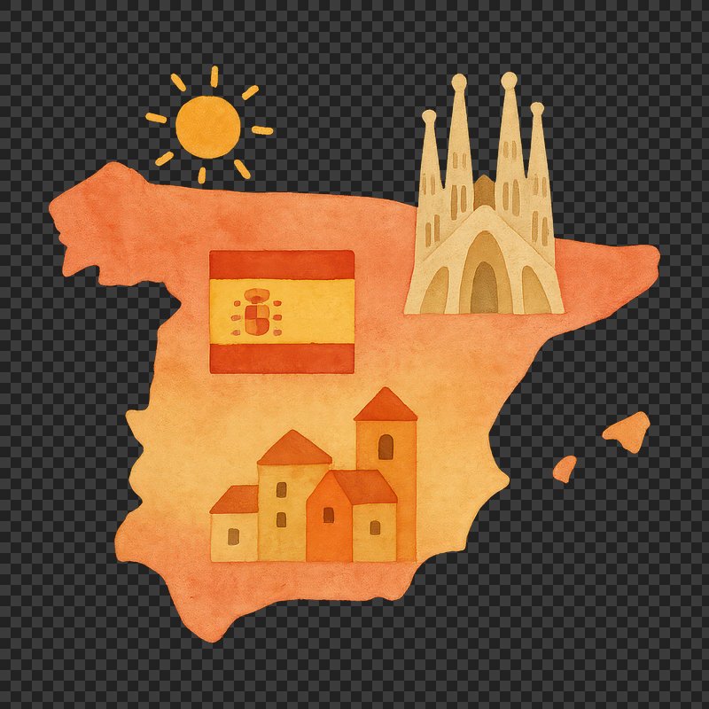 PNG Spain map with cultural symbols. https://www.rawpixel.com/image/18710602/png-spain-map-with-cultural-symbolsView license