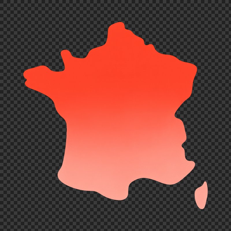 PNG France map silhouette gradient https://www.rawpixel.com/image/24999279/png-france-map-silhouette-gradientView license