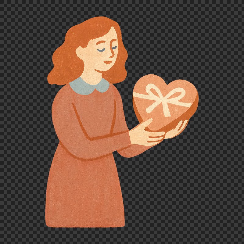 PNG Woman holding heart-shaped gift. https://www.rawpixel.com/image/24795221/png-woman-holding-heart-shaped-giftView license