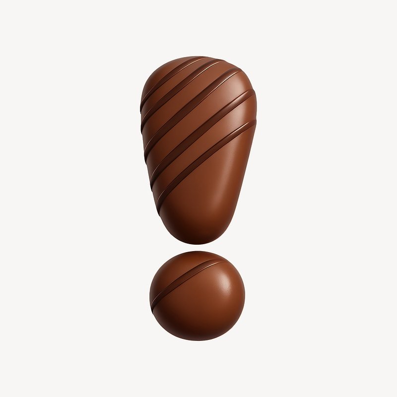 Chocolate exclamation mark design. https://www.rawpixel.com/image/24265575/chocolate-exclamation-mark-designView license