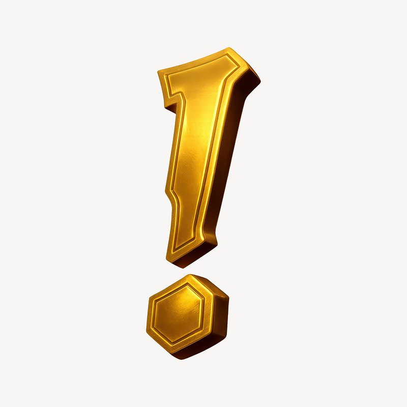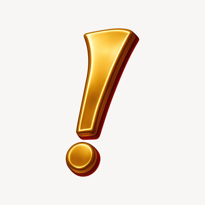 Golden exclamation mark illustration. https://www.rawpixel.com/image/24790577/golden-exclamation-mark-illustrationView license
