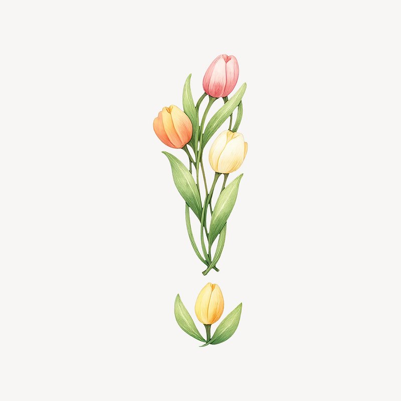 Colorful tulip exclamation mark https://www.rawpixel.com/image/25398303/colorful-tulip-exclamation-markView license