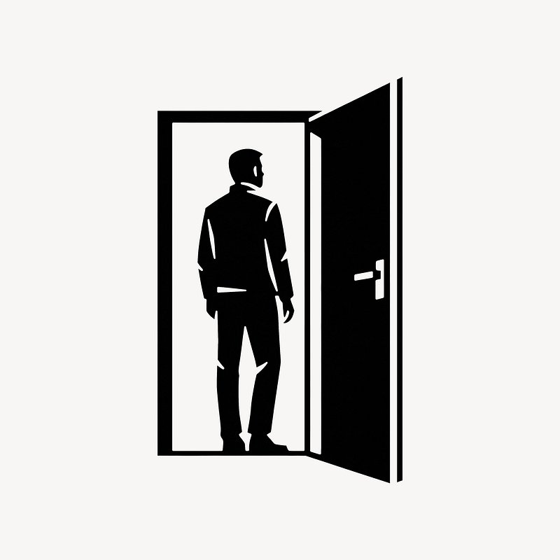 Silhouette man entering open door. https://www.rawpixel.com/image/25793537/silhouette-man-entering-open-doorView license
