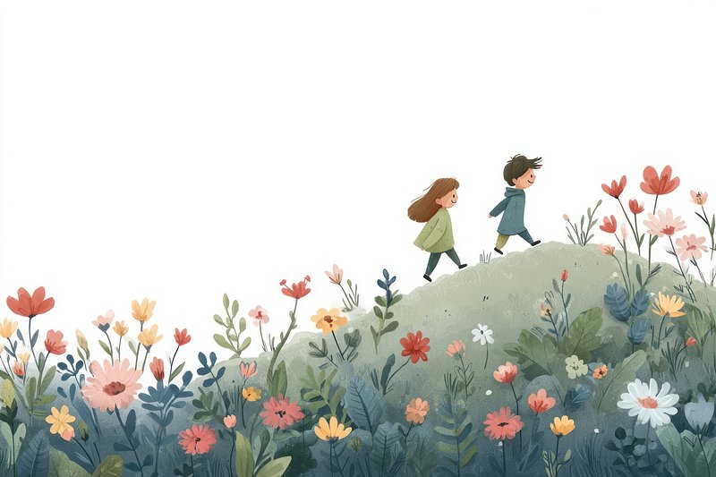 PNG Children exploring floral landscape. https://www.rawpixel.com/image/25253258/png-children-exploring-floral-landscapeView license
