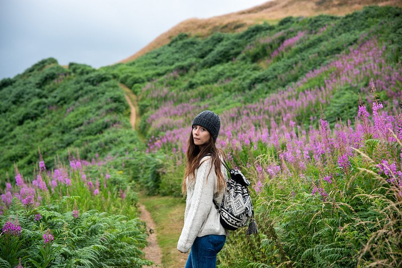 Woman hiking through lush landscape. https://www.rawpixel.com/image/26007306/woman-hiking-through-lush-landscapeView license