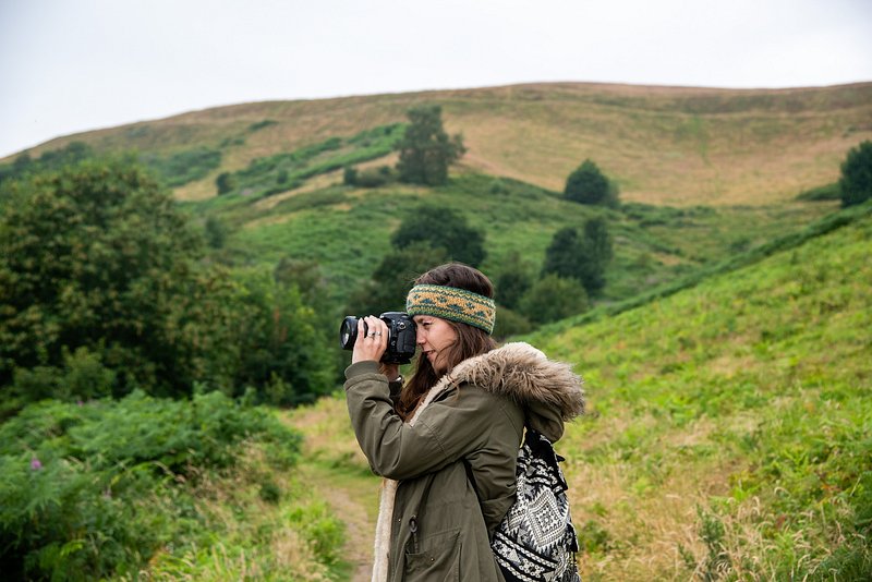 Photographer exploring lush green hills. https://www.rawpixel.com/image/26007256/photographer-exploring-lush-green-hillsView license