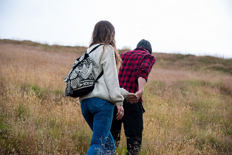 Couple hiking through grassy field. https://www.rawpixel.com/image/26007261/couple-hiking-through-grassy-fieldView license