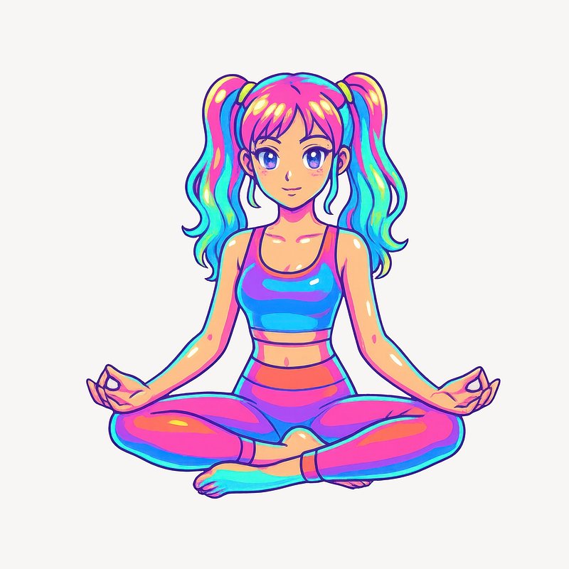 Colorful meditating anime character https://www.rawpixel.com/image/18929577/colorful-meditating-anime-characterView license