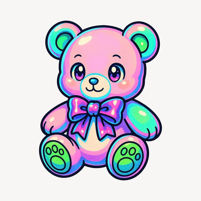 Colorful kawaii teddy bear illustration. https://www.rawpixel.com/image/18931349/colorful-kawaii-teddy-bear-illustrationView license