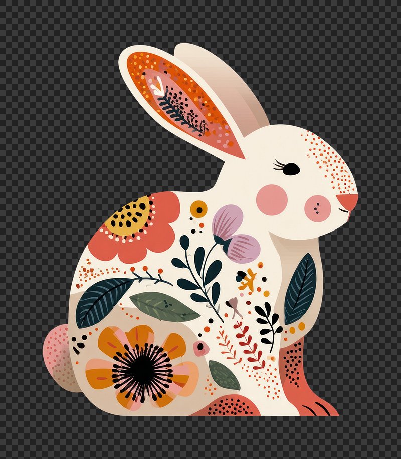 PNG Floral patterned rabbit illustration https://www.rawpixel.com/image/24907971/png-floral-patterned-rabbit-illustrationView license