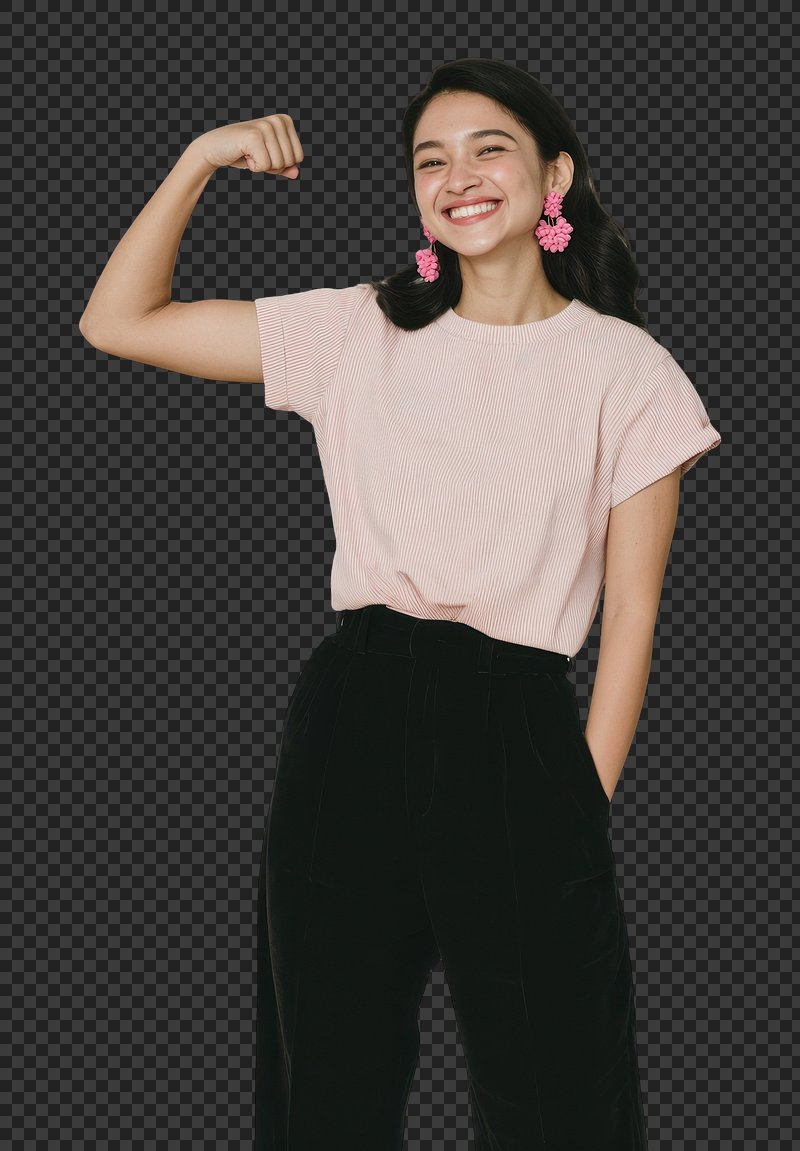 PNG Confident woman flexing strength. https://www.rawpixel.com/image/25247233/png-confident-woman-flexing-strengthView license