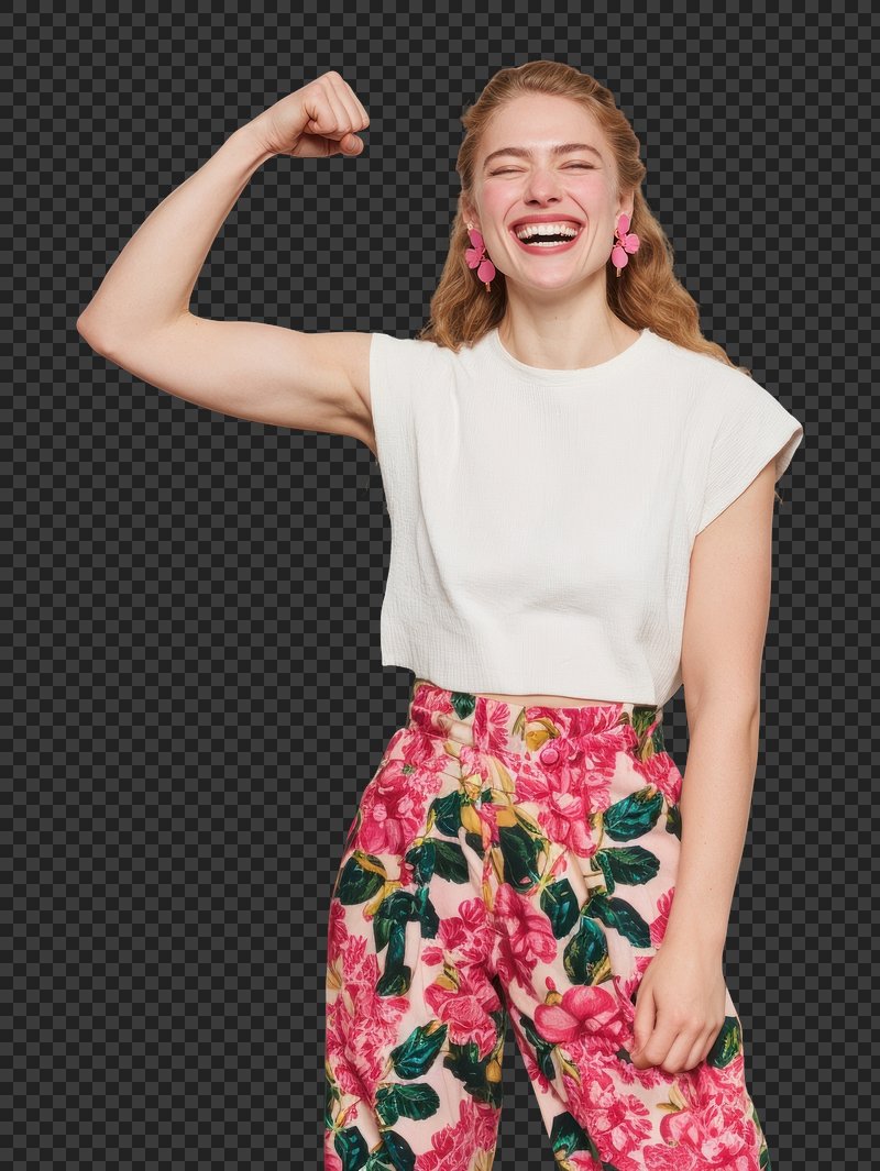 PNG Joyful woman flexing strength confidently. https://www.rawpixel.com/image/25244578/png-joyful-woman-flexing-strength-confidentlyView license