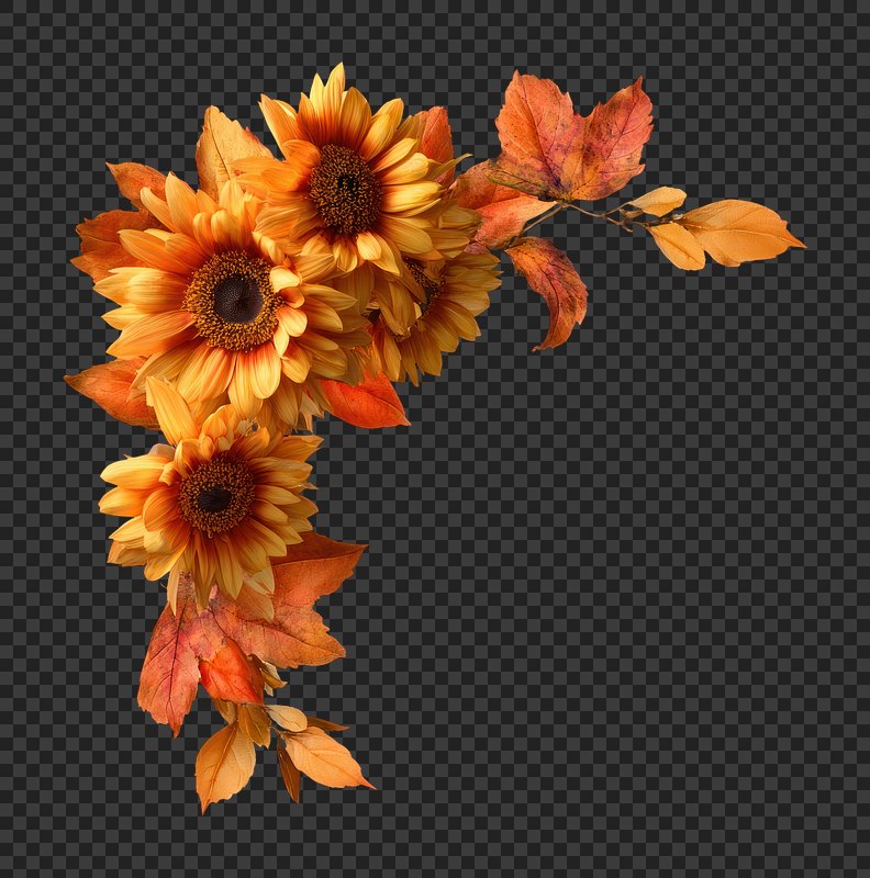 PNG Autumn sunflowers with orange leaves. https://www.rawpixel.com/image/25814601/png-autumn-sunflowers-with-orange-leavesView license