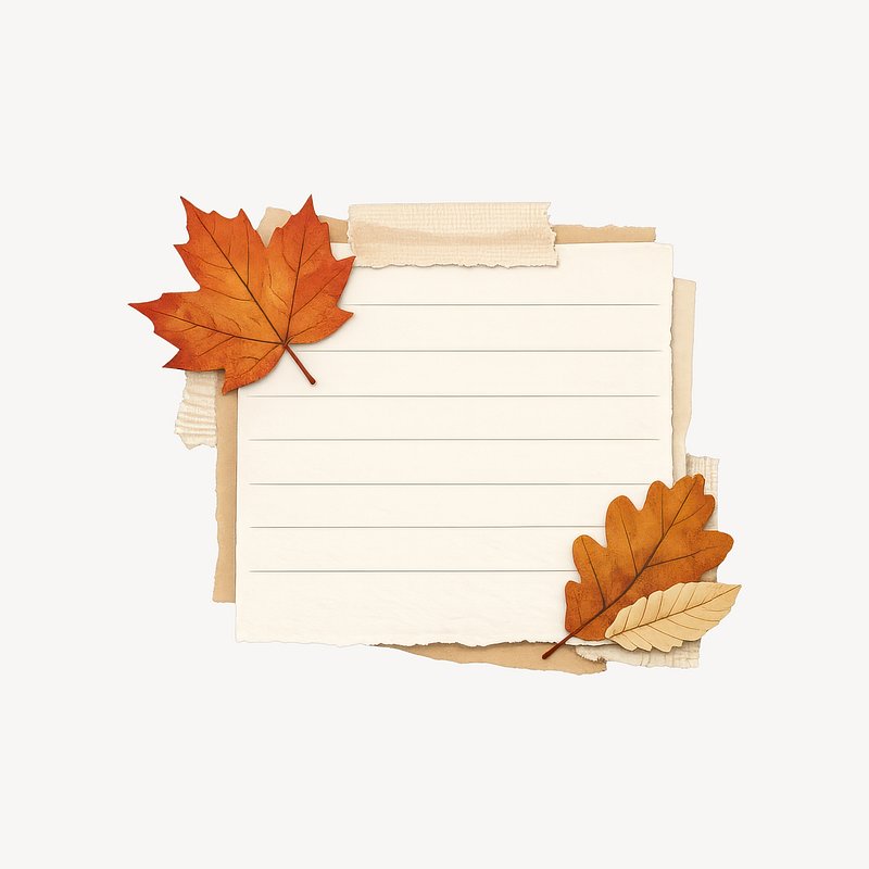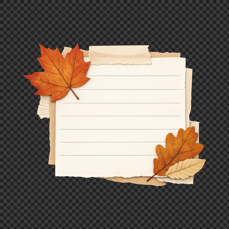 PNG Autumn leaves paper note https://www.rawpixel.com/image/25499992/png-autumn-leaves-paper-noteView license