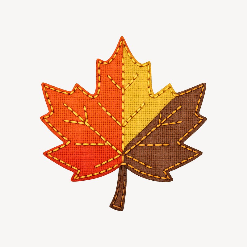 Colorful stitched autumn leaf. https://www.rawpixel.com/image/25791096/colorful-stitched-autumn-leafView license