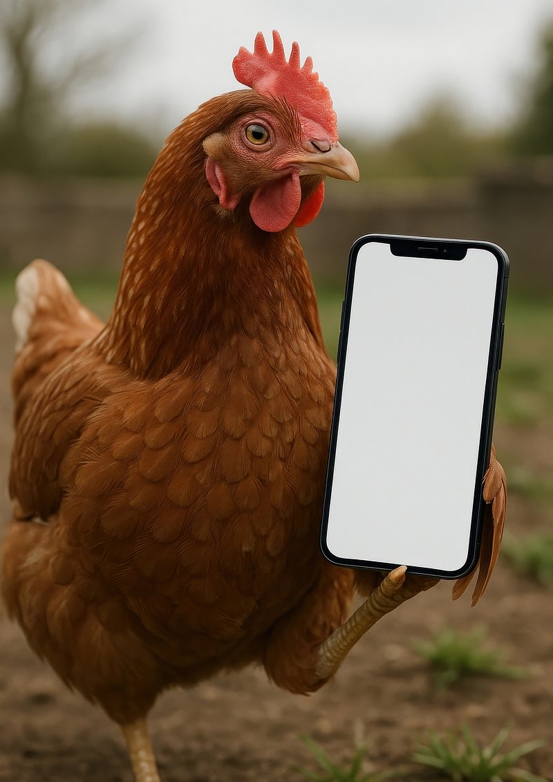 Chicken holding blank phone. https://www.rawpixel.com/image/21095185/chicken-holding-blank-phoneView license