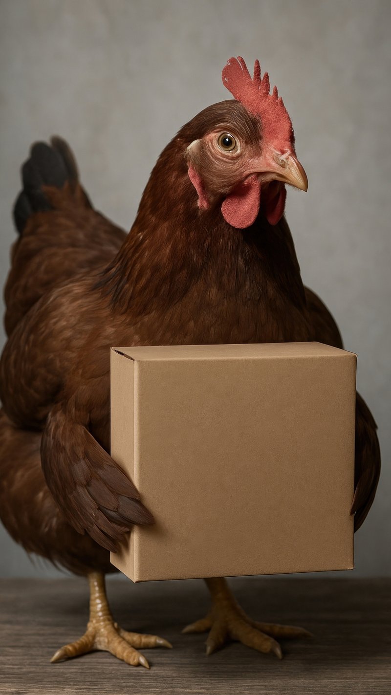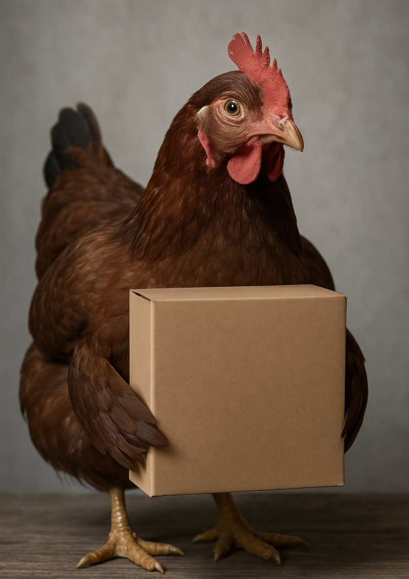 Chicken holding cardboard box. https://www.rawpixel.com/image/21103725/chicken-holding-cardboard-boxView license