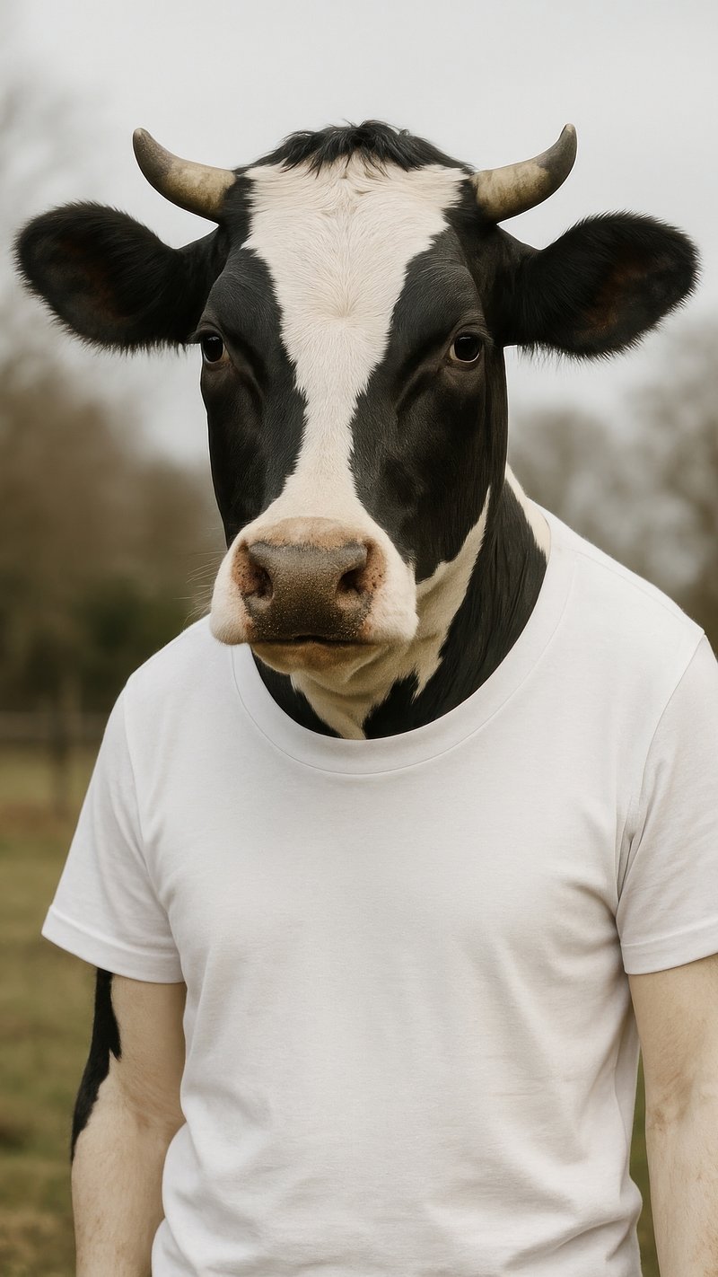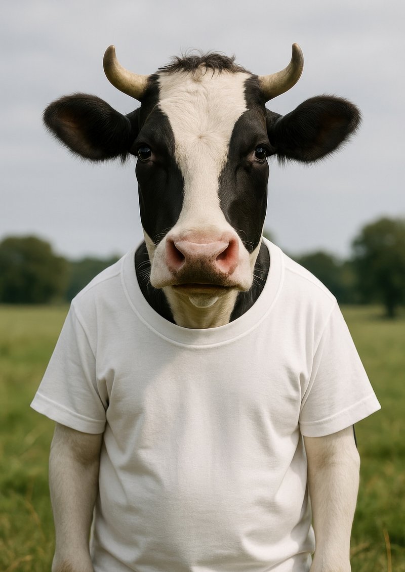 Cow wearing white shirt https://www.rawpixel.com/image/22437935/cow-wearing-white-shirtView license