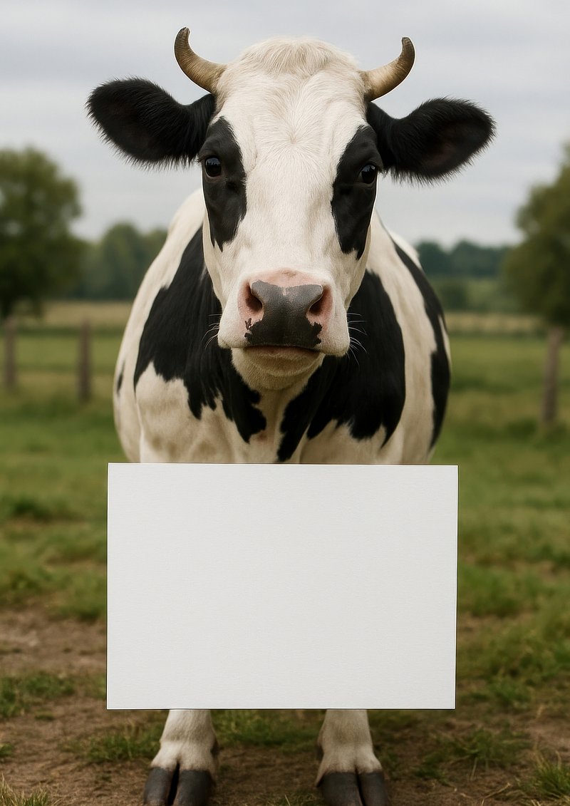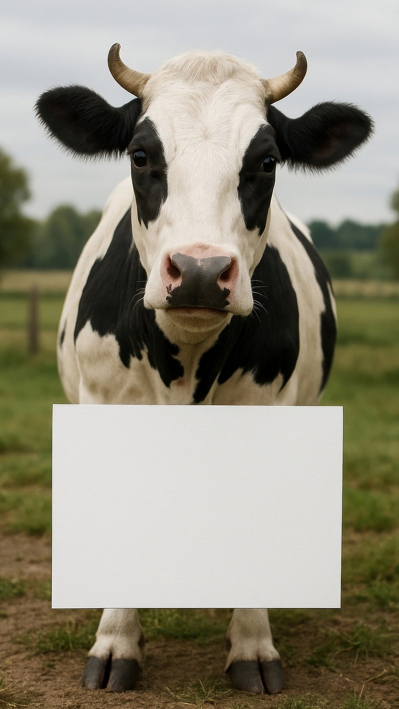 Cow holding blank sign. https://www.rawpixel.com/image/22440817/cow-holding-blank-signView license