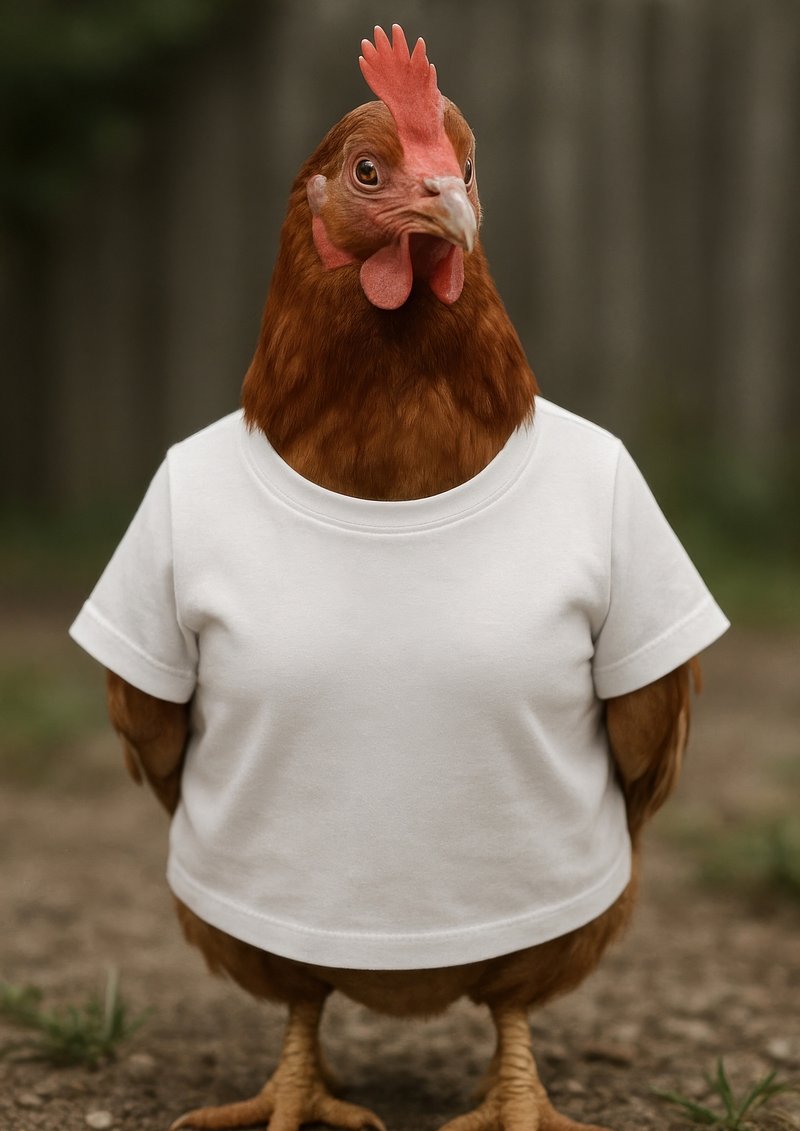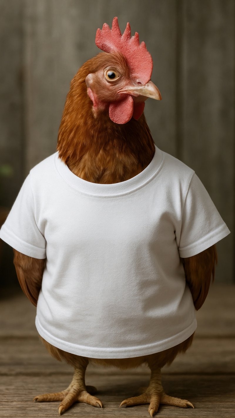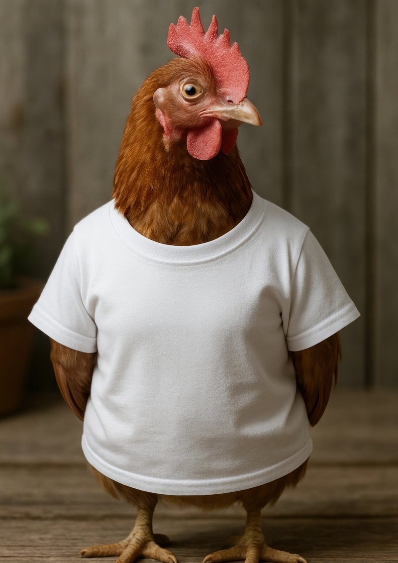 Chicken wearing white shirt https://www.rawpixel.com/image/22423271/chicken-wearing-white-shirtView license