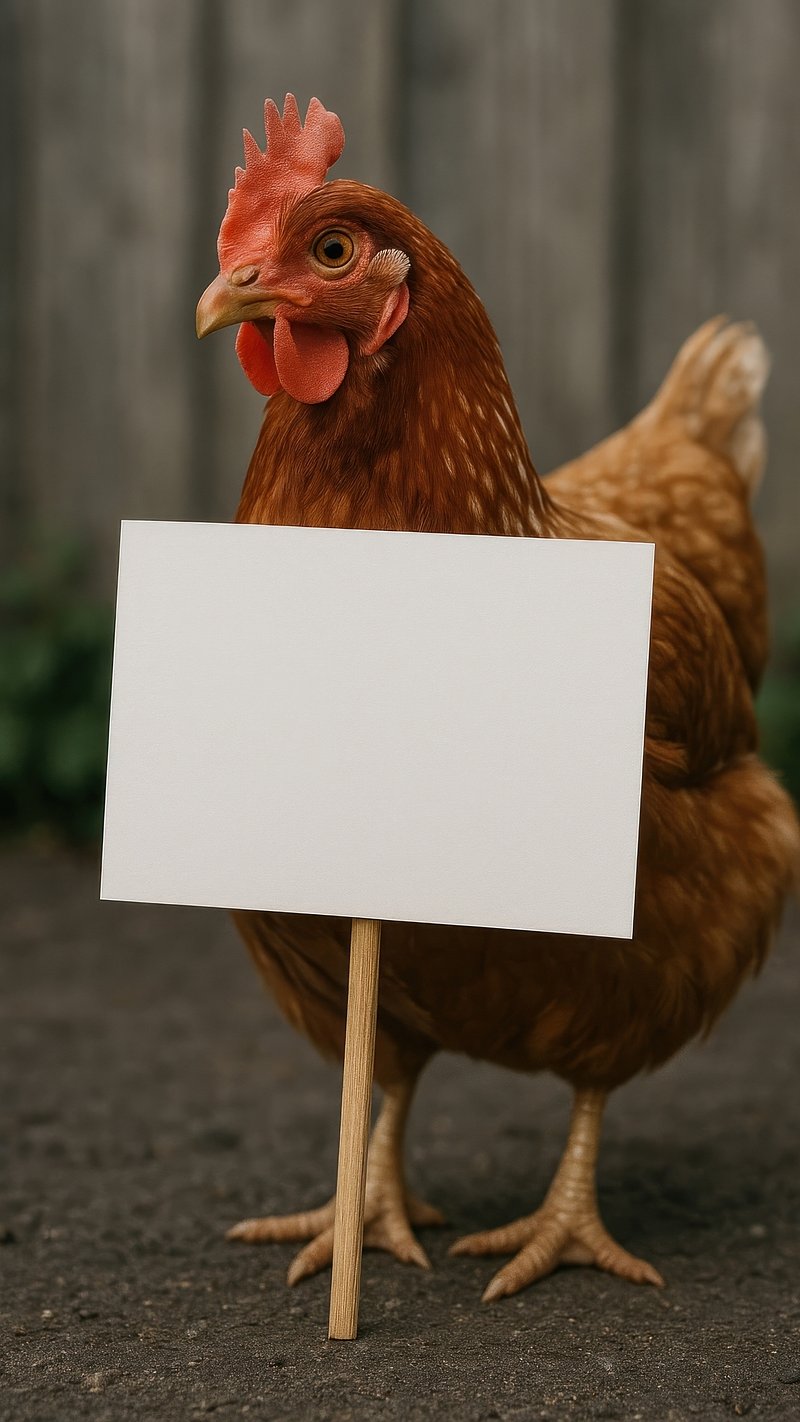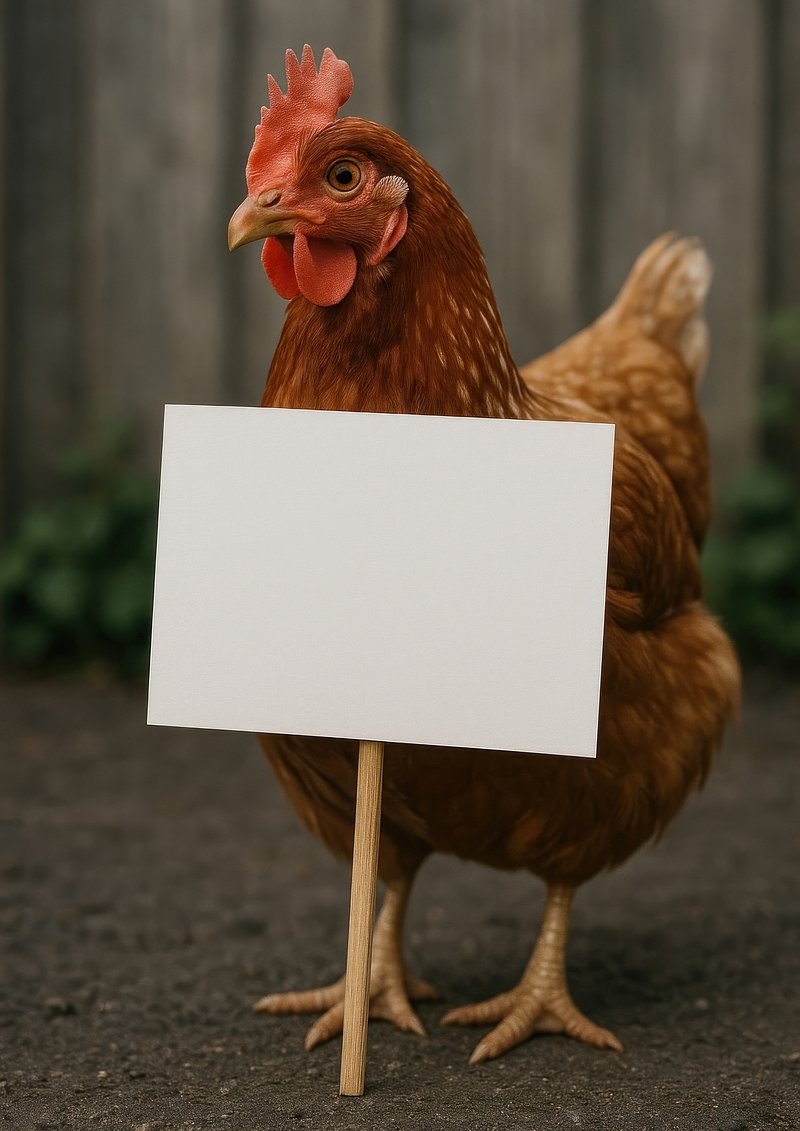 Chicken holding blank sign. https://www.rawpixel.com/image/22479017/chicken-holding-blank-signView license