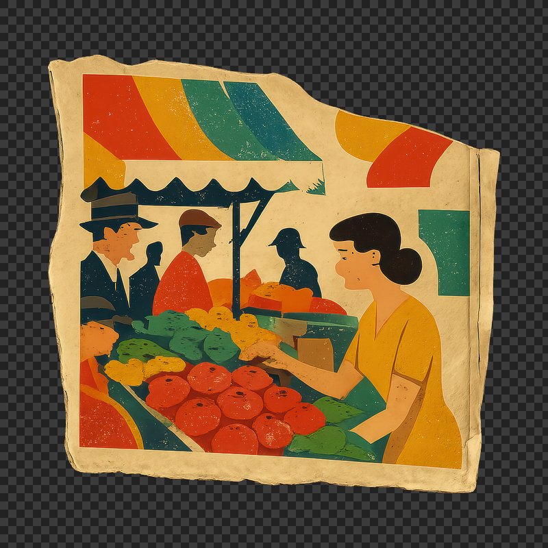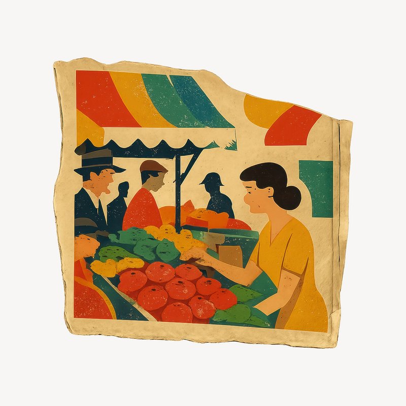 Vibrant market scene illustration. https://www.rawpixel.com/image/25064516/vibrant-market-scene-illustrationView license