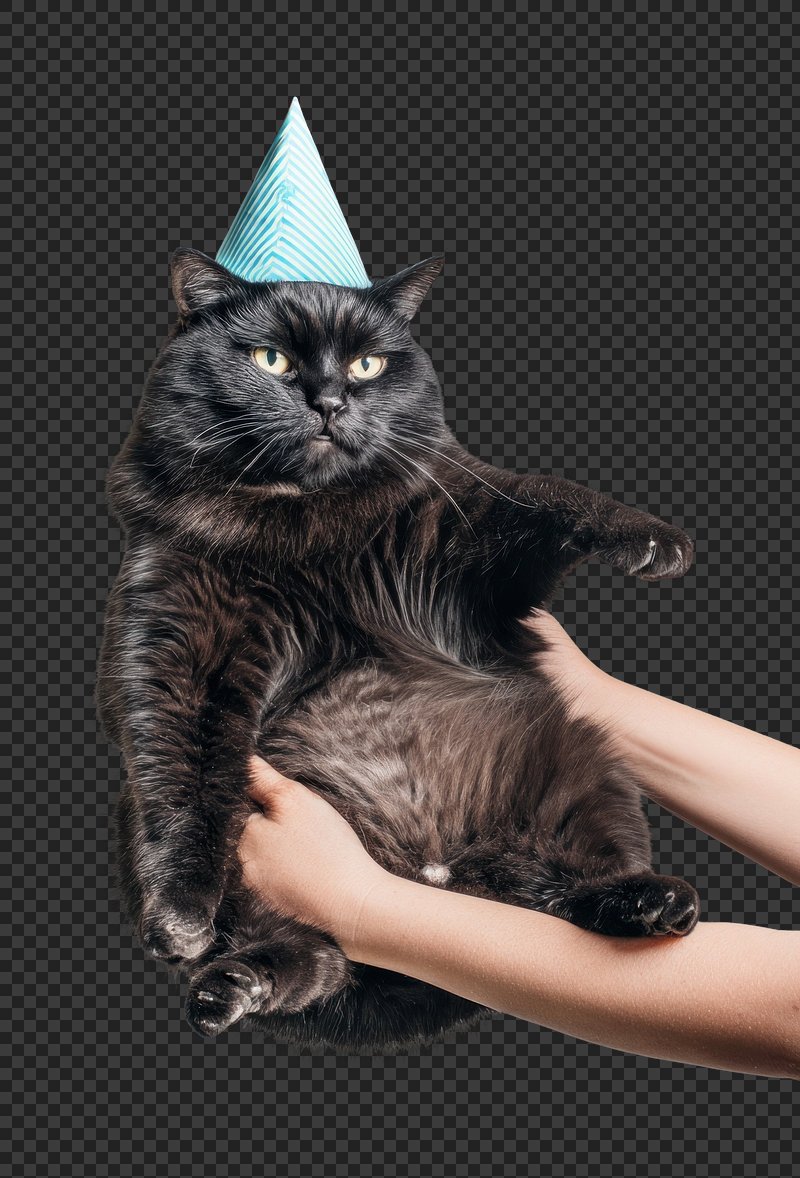 PNG Funny cat with party hat https://www.rawpixel.com/image/22162489/png-funny-cat-with-party-hatView license
