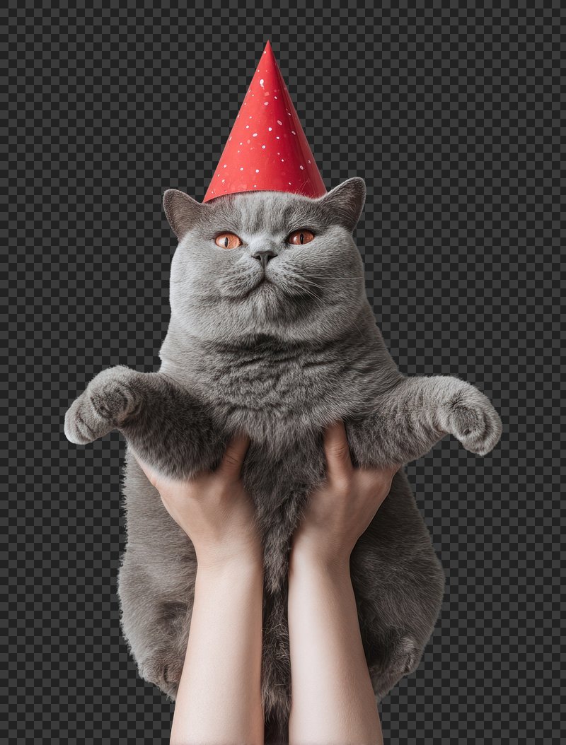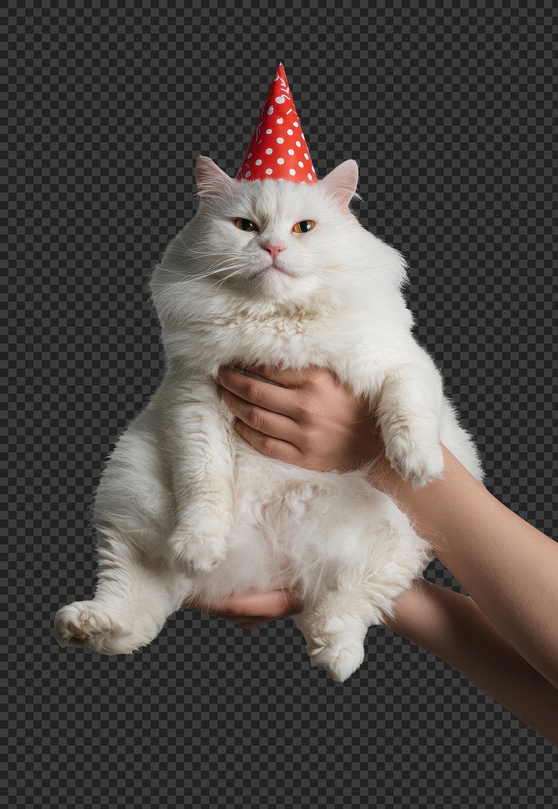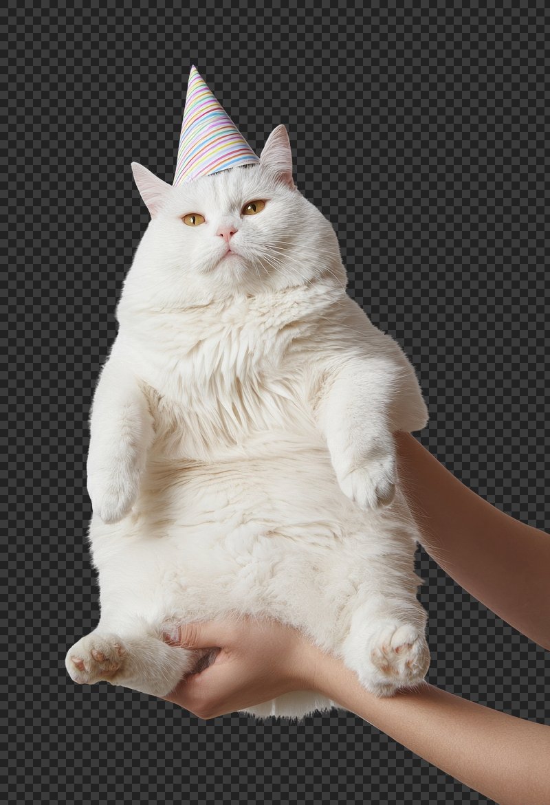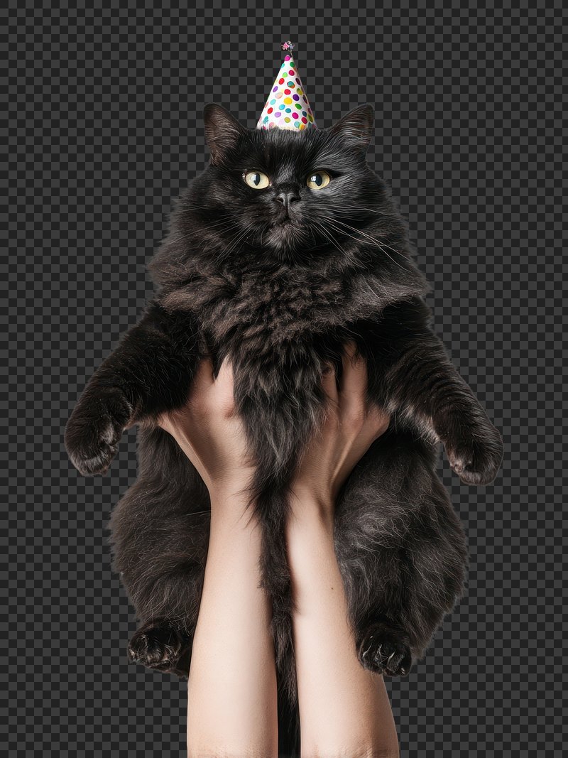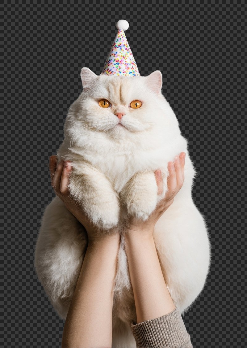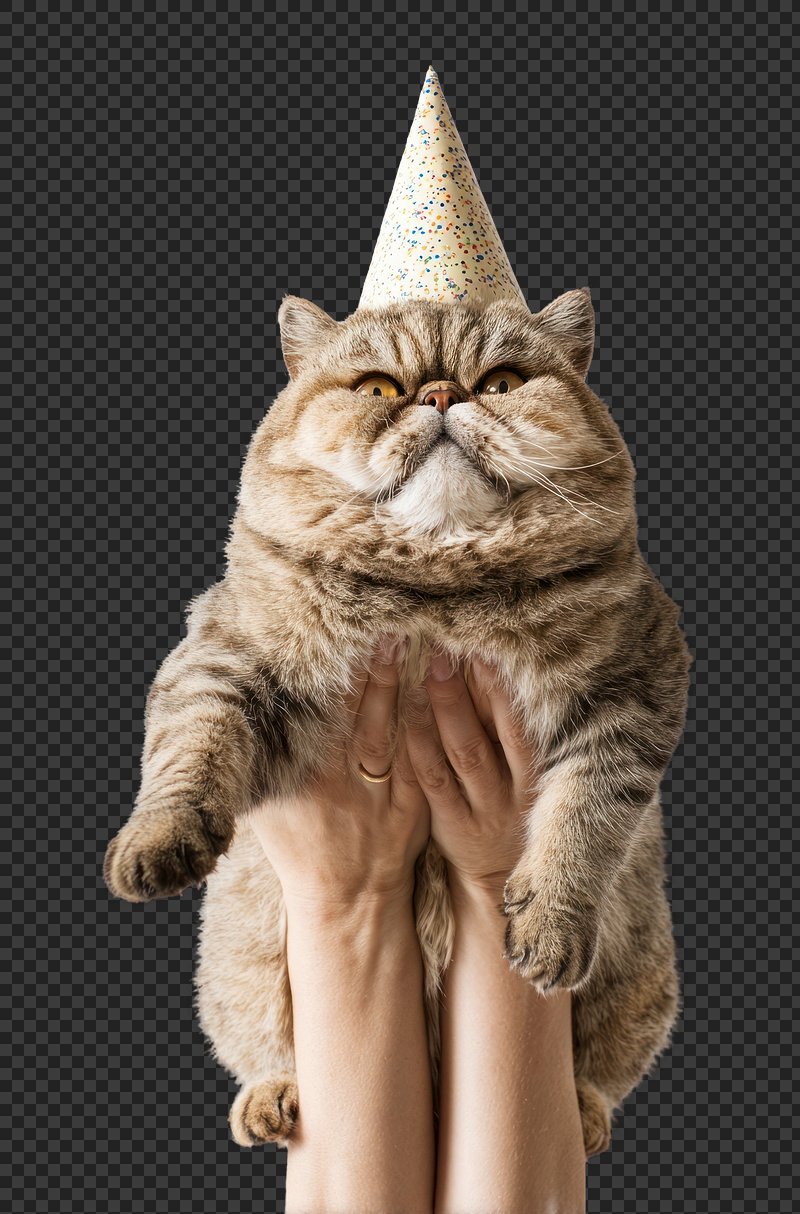 PNG Fluffy cat celebrates birthday. https://www.rawpixel.com/image/22164391/png-fluffy-cat-celebrates-birthdayView license
