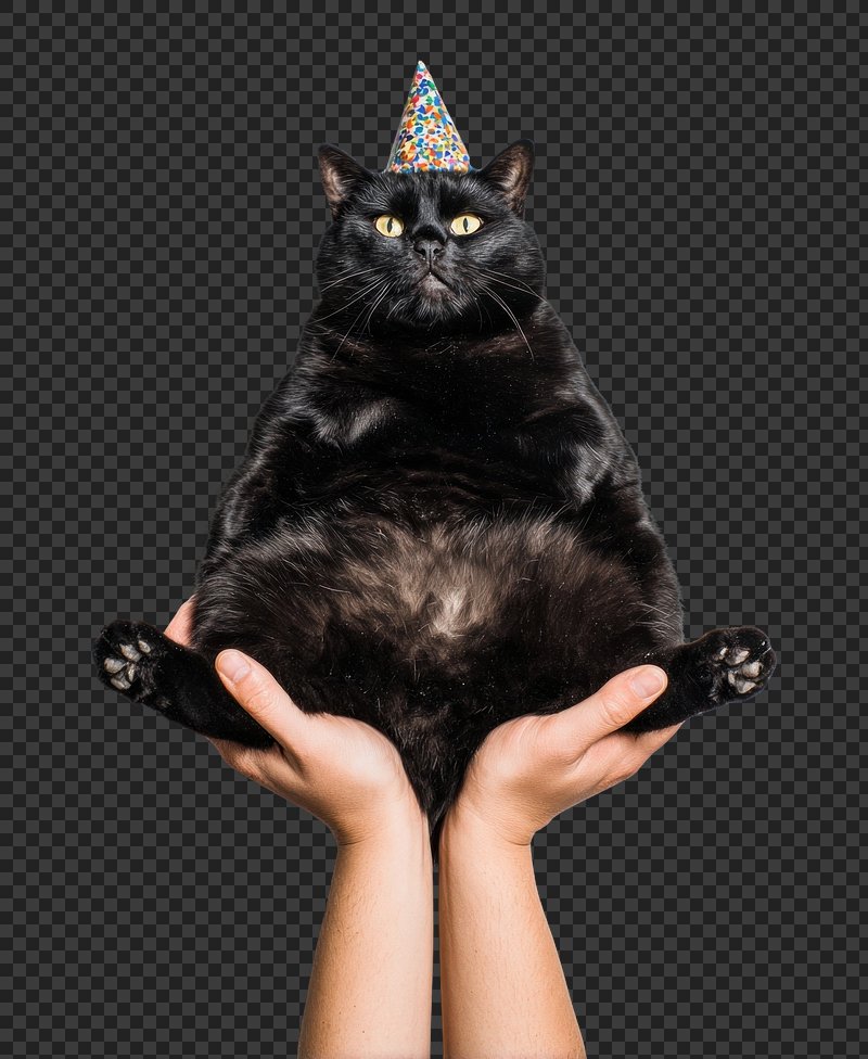 PNG Chubby cat wearing party hat. https://www.rawpixel.com/image/22164254/png-chubby-cat-wearing-party-hatView license