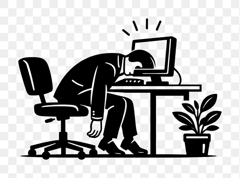 Exhausted worker at desk illustration. https://www.rawpixel.com/image/25704831/exhausted-worker-desk-illustrationView license
