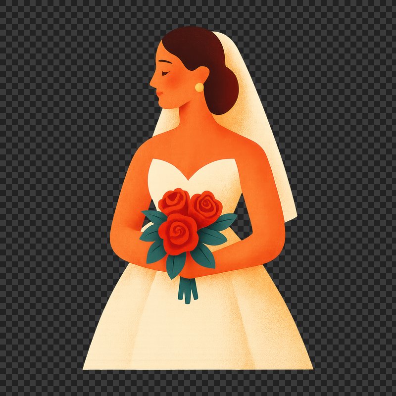 PNG Elegant bride holding vibrant bouquet. https://www.rawpixel.com/image/24731083/png-elegant-bride-holding-vibrant-bouquetView license