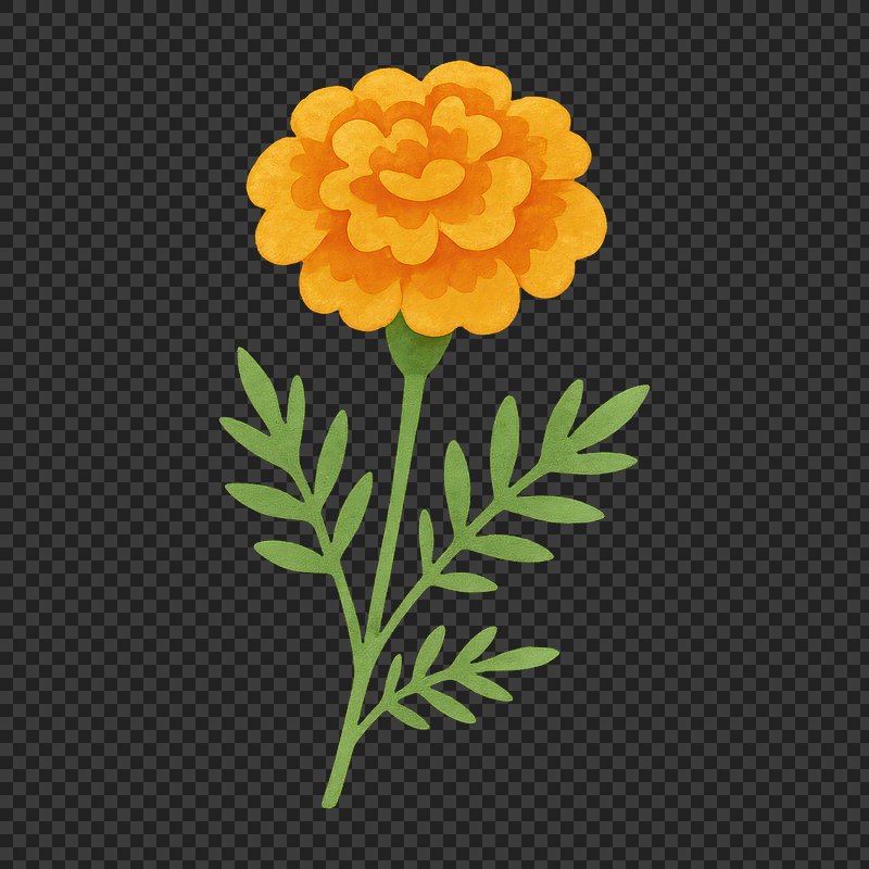 PNG Vibrant marigold illustration with leaves. https://www.rawpixel.com/image/18976921/png-vibrant-marigold-illustration-with-leavesView license