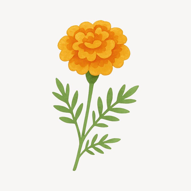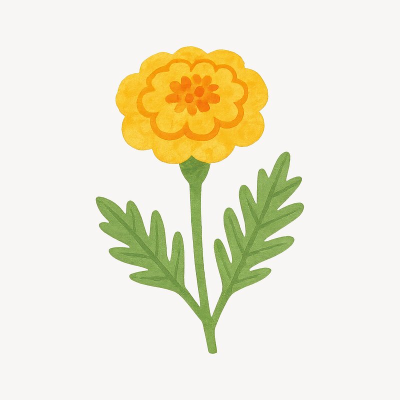 Vibrant marigold illustration with leaves. https://www.rawpixel.com/image/19451722/vibrant-marigold-illustration-with-leavesView license
