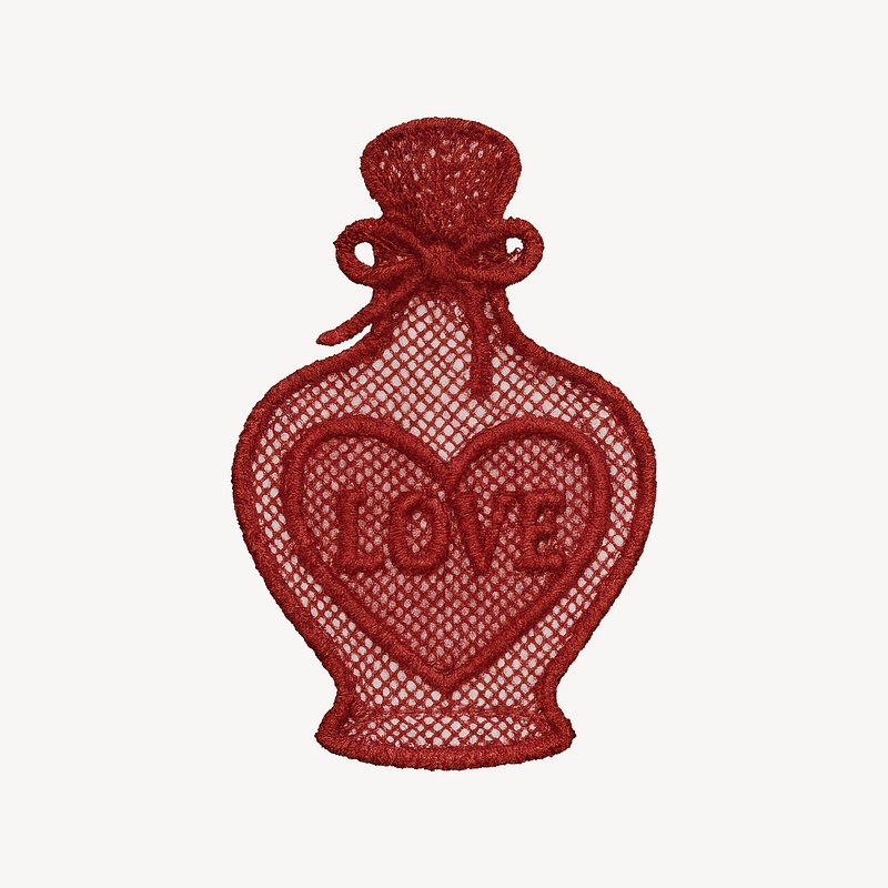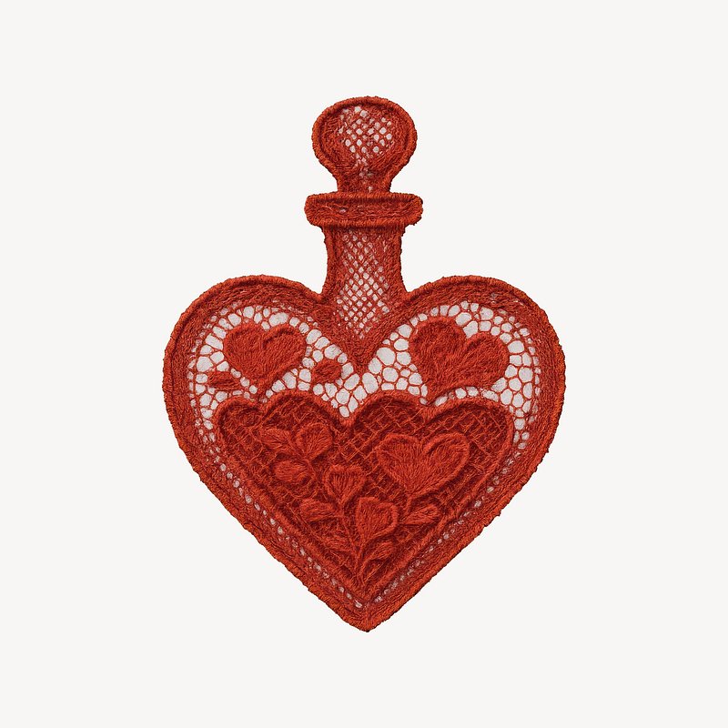 Red lace heart bottle design https://www.rawpixel.com/image/24740777/red-lace-heart-bottle-designView license