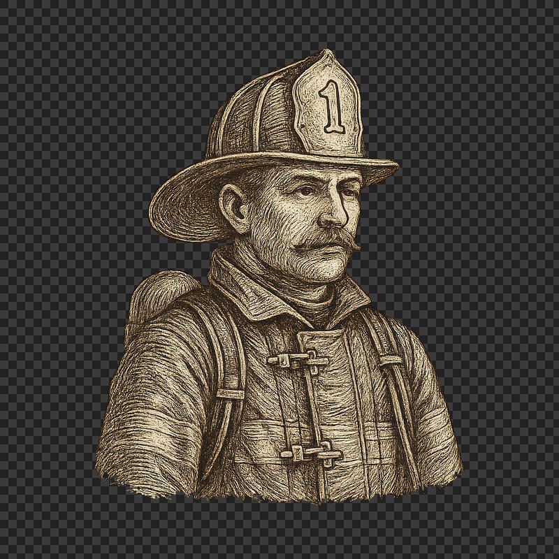 PNG Vintage firefighter sketch illustration. https://www.rawpixel.com/image/24132552/png-vintage-firefighter-sketch-illustrationView license