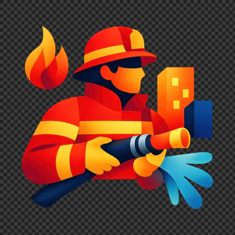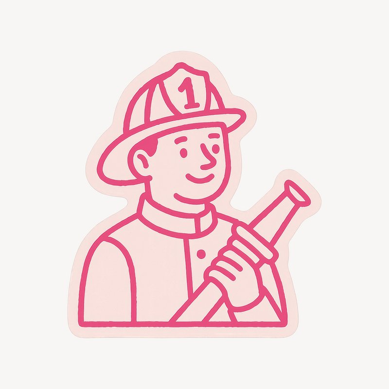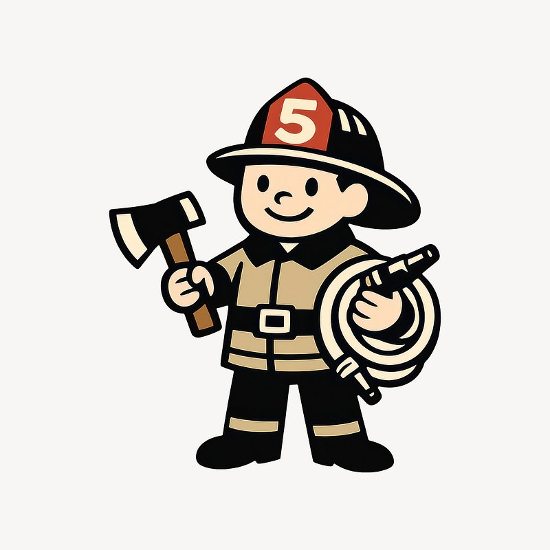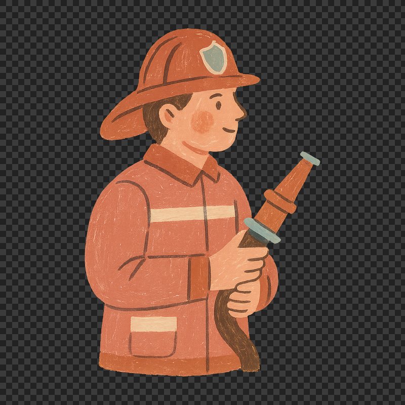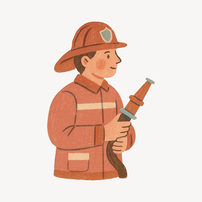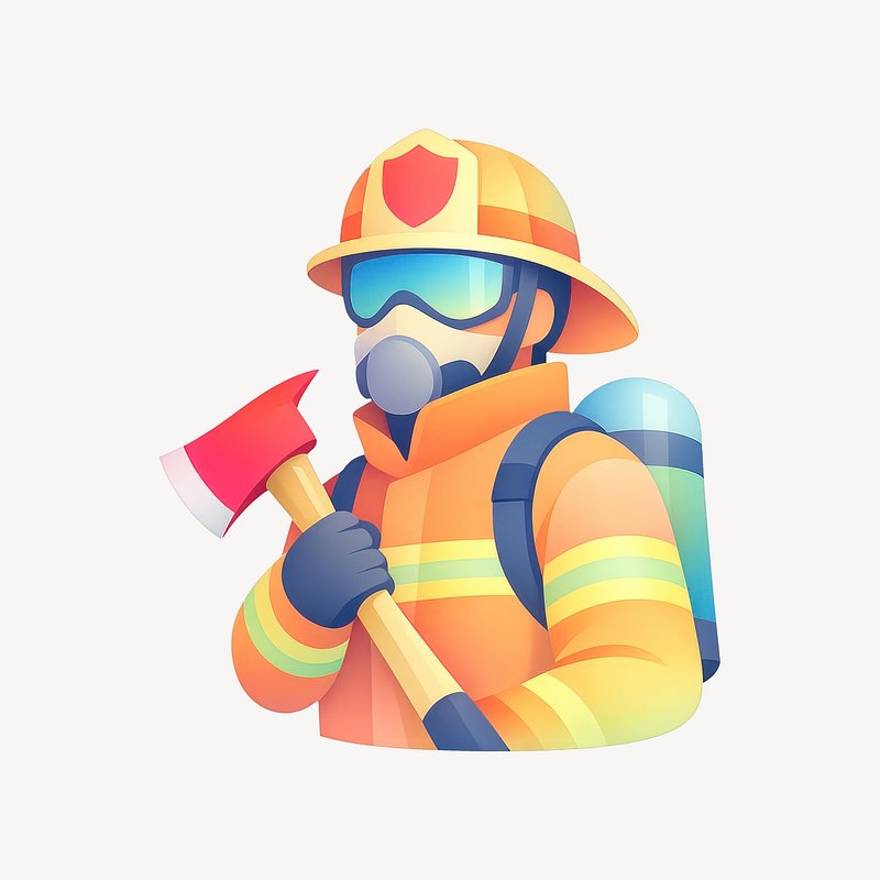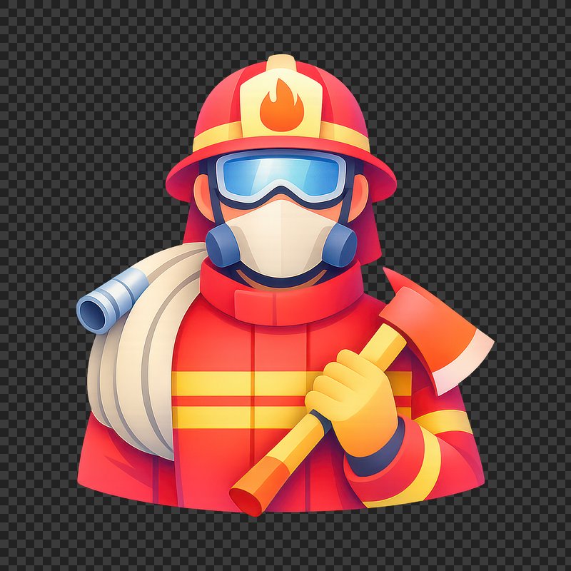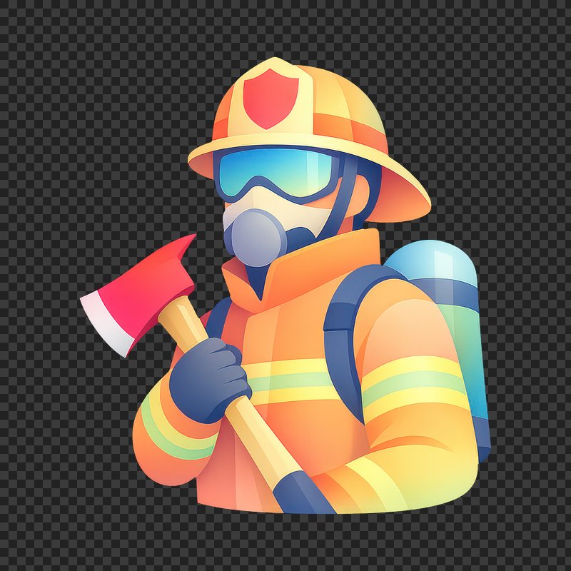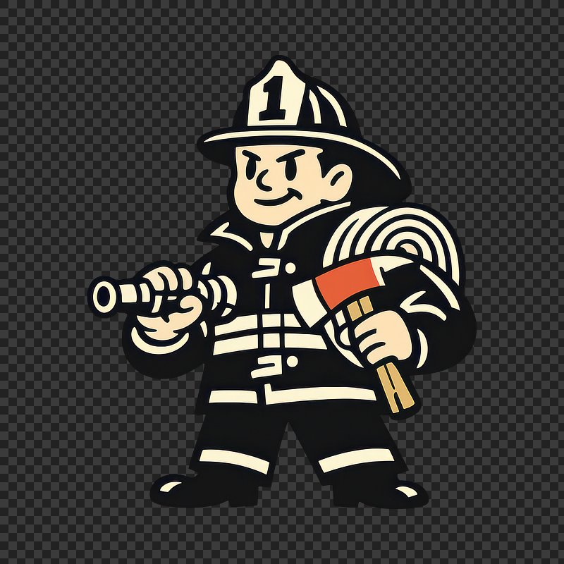 Cartoon firefighter holding tools. https://www.rawpixel.com/image/25758145/cartoon-firefighter-holding-toolsView license