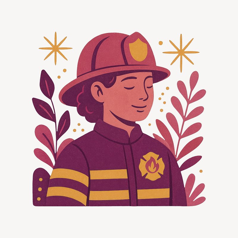 Firefighter illustration with foliage. https://www.rawpixel.com/image/24660787/firefighter-illustration-with-foliageView license