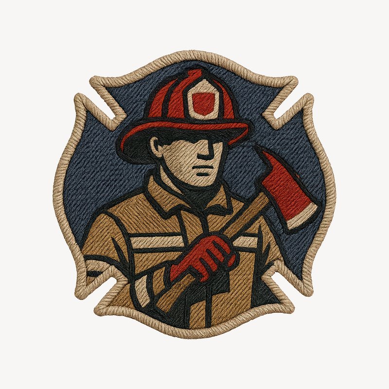 Embroidered firefighter patch illustration. https://www.rawpixel.com/image/24497781/embroidered-firefighter-patch-illustrationView license