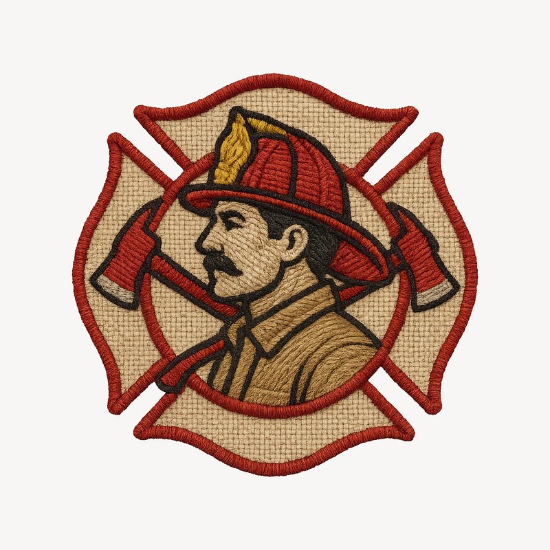 Embroidered firefighter emblem illustration. https://www.rawpixel.com/image/24501044/embroidered-firefighter-emblem-illustrationView license