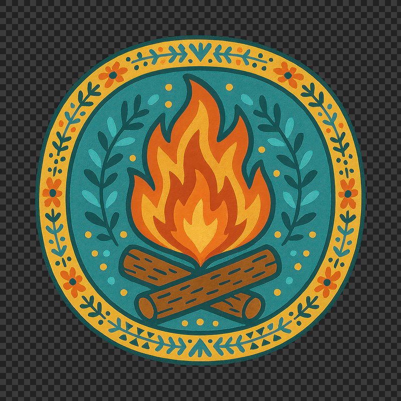 PNG Colorful campfire emblem illustration. https://www.rawpixel.com/image/21813510/png-colorful-campfire-emblem-illustrationView license