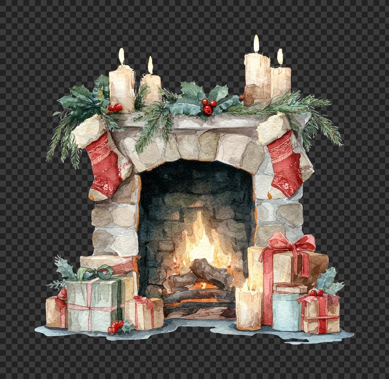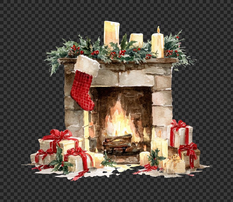 PNG Cozy fireplace with festive decorations. https://www.rawpixel.com/image/24018664/png-cozy-fireplace-with-festive-decorationsView license