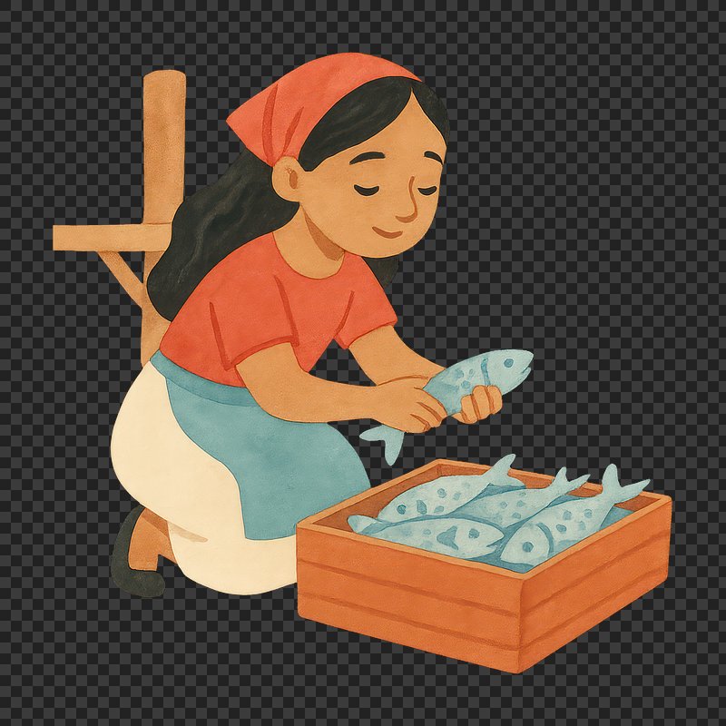 PNG Illustration of woman selling fish. https://www.rawpixel.com/image/19217760/png-illustration-woman-selling-fishView license