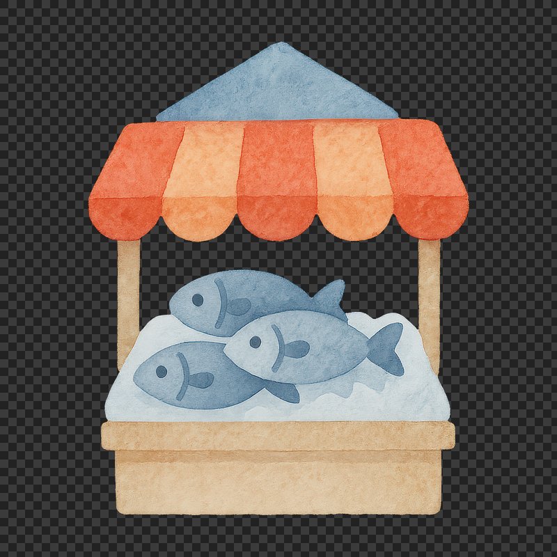 PNG Charming watercolor fish market illustration. https://www.rawpixel.com/image/19705727/png-charming-watercolor-fish-market-illustrationView license