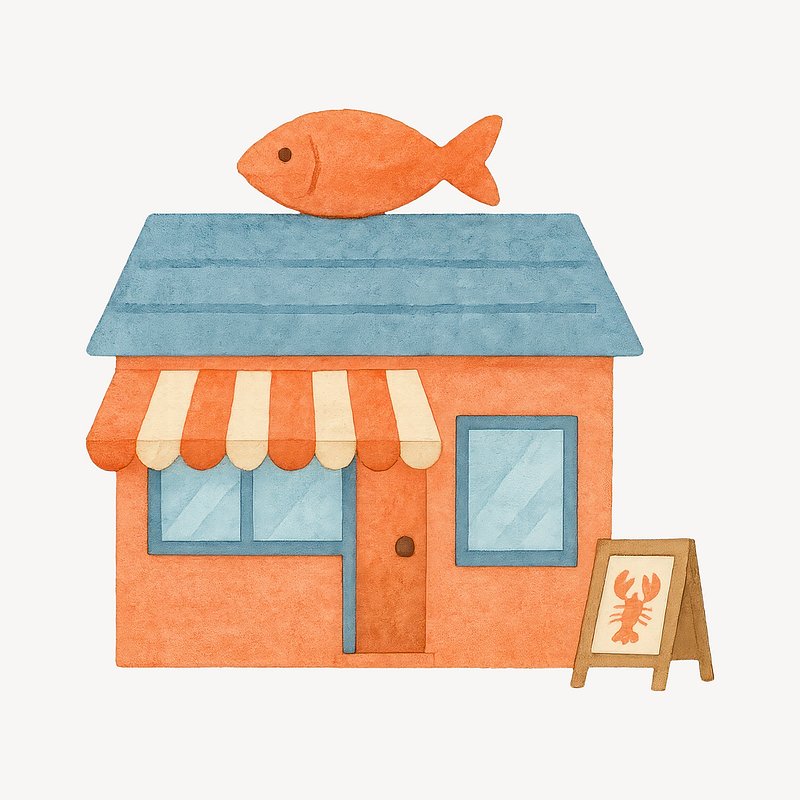 Charming seafood shop illustration. https://www.rawpixel.com/image/19326721/charming-seafood-shop-illustrationView license