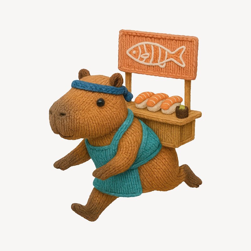 Capybara sushi vendor figurine https://www.rawpixel.com/image/24531104/capybara-sushi-vendor-figurineView license