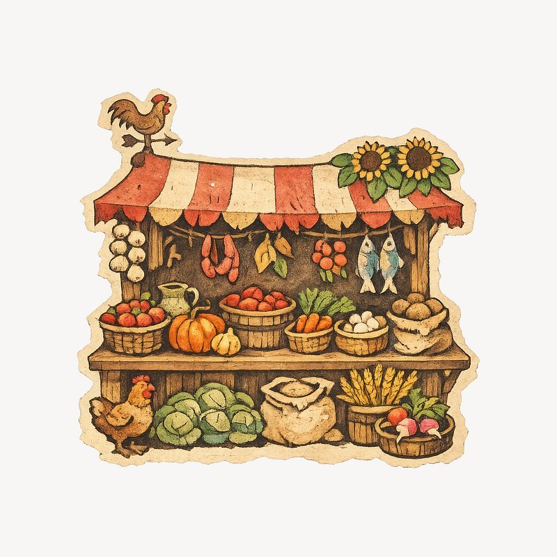 Rustic market stall illustration. https://www.rawpixel.com/image/25539134/rustic-market-stall-illustrationView license